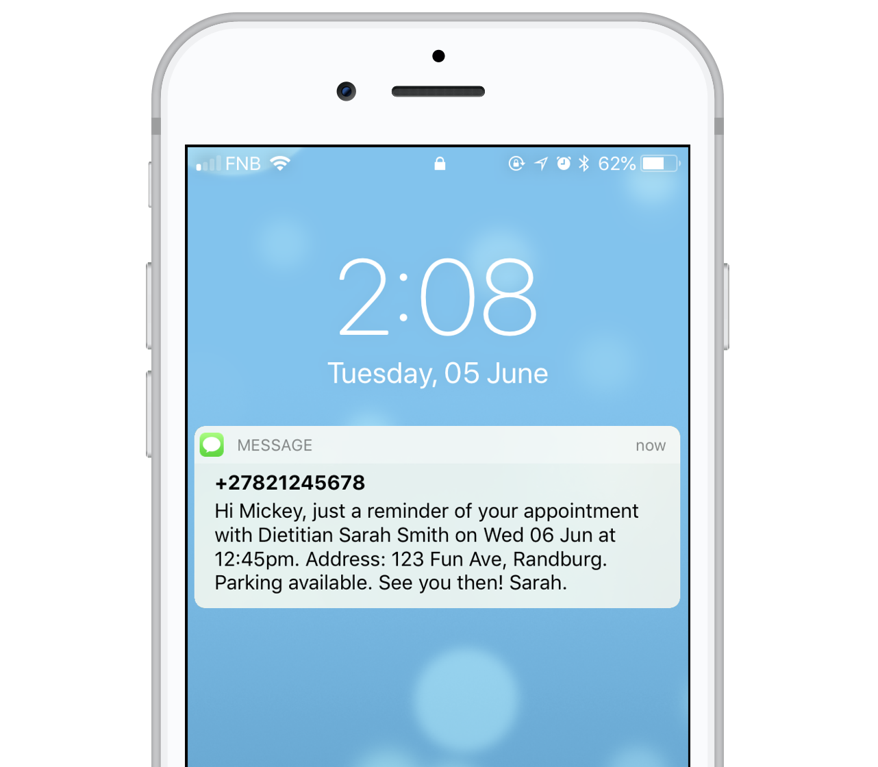 SMS or email notifications are automatically sent to your clients when an appointment is created, sends a reminder the day before and when appointments are rescheduled or canceled. See more on AppointmentGuru's automated notifications.