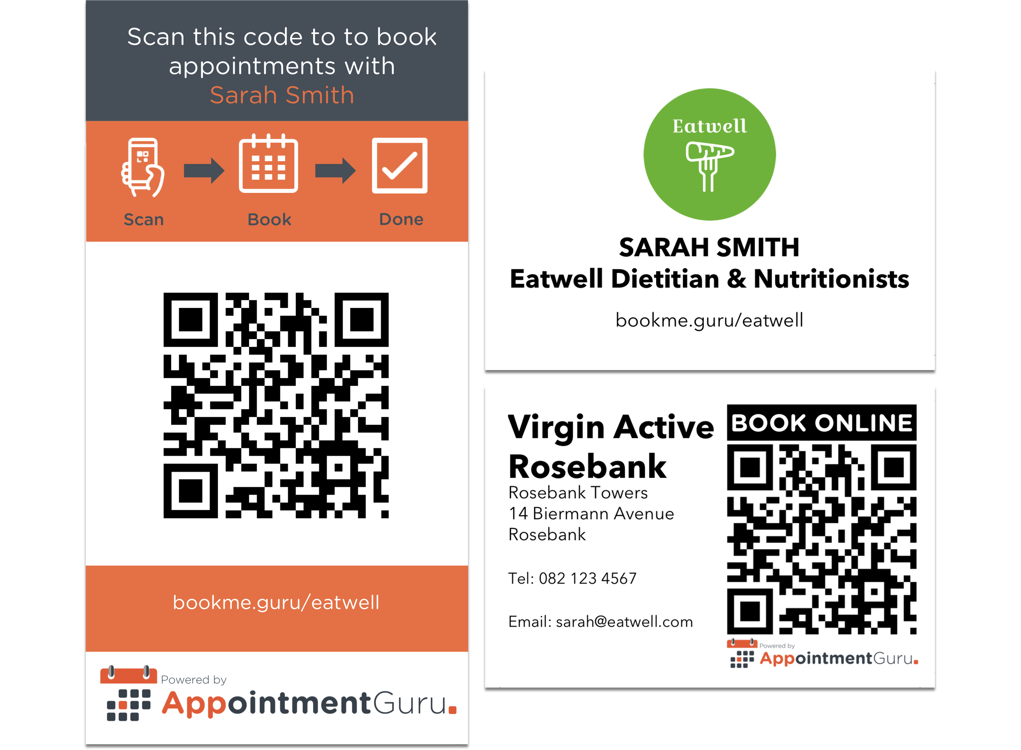 Business cards displaying your contact information and QR code (with the same functionality as the table talkers) to take bookings. The first 100 are a gift from us!